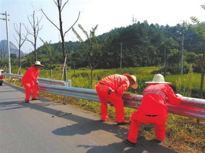 日前,常山县公路管理局应急抢险中心的工作人员冒着室外近40℃高温,在S221江溪线(48省道),奋力抢修被损坏的护栏设施,及时消除安全隐患。徐莹 余建行