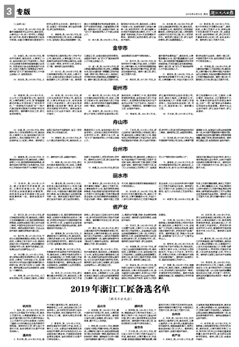 60. 程志芳,男,1971年7月生,永康市掌声金属制品厂,高级技师,从事锻造雕刻30年,国内银器雕刻行业领军人,参与起草国内银器雕刻项目专项技能标准,引领永康五金向高端转型。曾获八婺工匠、省“百千万”高技能领军人才中拔尖技能人才。