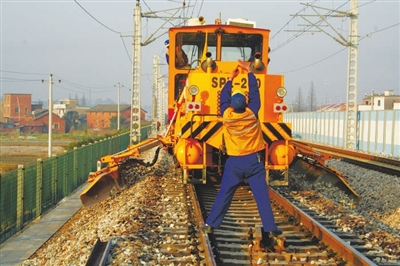 现代大型道砟清筛车在宣杭线作业,彻底解放了劳动力。