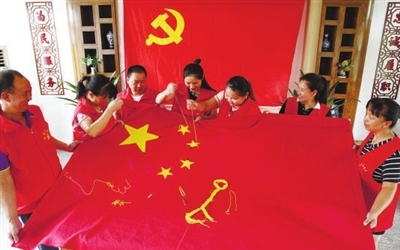 20多天来,绣花针、金丝线在外来流动党员中传递,大家你一针、我一线,争相在鲜红的五星红旗上绣上自己的针脚,融入自己对党、对祖国的一片深情,满怀豪情喜迎中华人民共和国成立70周年,祝福祖国繁荣昌盛。
