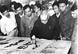 | 1980年,著名书法家沙孟海在杭州市工人文化宫表演书法。 |