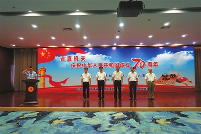 为庆祝新中国成立70周年,省直属机关工会委员会与省职工服务中心,共同组织开展了乒乓球、中国象棋、围棋、桥牌等系列文体比赛,并于9月21日上午举行开幕式。省人大常委会副主任、省总工会主席史济锡,省委副秘书长、省直机关工委书记郑才法,省总工会党组书记、副主席张才方,省总工会副主席周小兵出席开幕式,省直机关工委副书记吴晓宏主持开幕式。