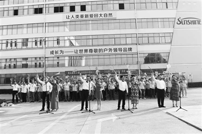 近日,武义县总工会在浙江圣雪休闲用品有限公司,组织500余名职工在厂区激情豪迈地奏唱《中华人民共和国国歌》和《今天是你的生日》,拉开了“庆祝新中国成立70周年——万名职工歌唱祖国”活动的序幕。
