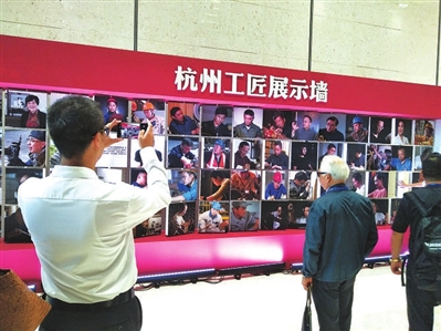 工匠精神,是一种情怀、一种执著、一份坚守、一份责任。它汇集了“技艺精湛”“心无旁骛”“持之以恒”“守得住清贫,耐得住寂寞”“创新创造”等所有宝贵的优秀品质。昨日,杭州市总工会在杭州国际博览中心三楼展厅举办为期两天的杭州工匠作品展示会,而展会的“C位”被一面醒目的杭州工匠展示墙牢牢占据,大家在驻足观看的同时,纷纷与工匠合影,因为,他们都是杭派匠心的代言人。记者胡翀 摄
