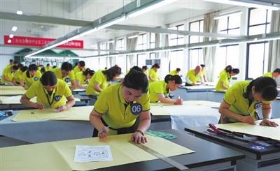 | 服装制作竞赛现场。 见习记者邹伟锋 摄 |