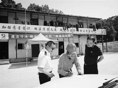 本报讯 通讯员唐颖韬、林诗佳摄影报道 “务工者不容易,我们得换位思考,尽一份心力;多帮助一位民工兄弟,多解决一个困难,让他们在外有获得感,多一份幸福感。”这是建德市劳动保障监察大队大队长钟浩清常说的话。今年以来,经他处置的各类劳动争议案件112件,已经为192名劳动者追回工资及待遇103.8万元,被农民工兄弟誉为善解“薪愁”的“老钟医”。图为钟浩清(左一)顶着烈日,在建筑工地现场检查“建德无欠薪”创建落实情况。