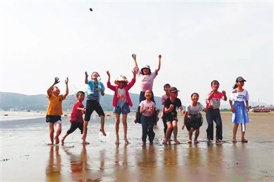 | 孩子们在岱山沙滩上欢呼雀跃。 |