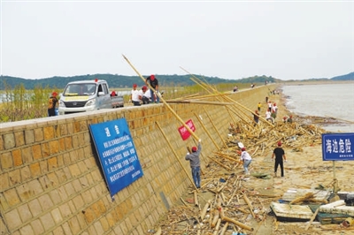 当天上午7时许,义工们就来到了石板殿堵坝,这段长1.15公里的堵坝,不仅是保护群众的生命线,同时也是陆地连接海岛渔村——南港村的主要通道。每到天文大潮,海水涌上坝脚,潮水退去后,就会带来很多的海洋垃圾,松门慈善义工服务队从去年开始,把净滩当作服务队的一项中心工作,松门司法所则把这里当作社区矫正人员的8小时劳动基地。通讯员江文辉 摄