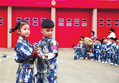 活动中,萌娃们通过逃生演习、试穿消防服、实操“一人两带”等寓教于乐的形式学习消防知识,“零距离”体验消防员生活,争当“小小消防员”。