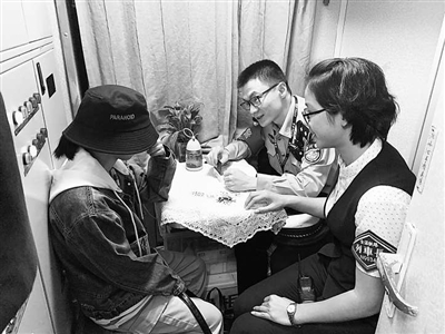 | 列车长李芳和乘警耐心劝说离家出走的女孩。 |