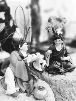 千年之后,这番关于处世之道的对话场景,被天台县非遗“捏糕花”传承人刘存昶通过灵巧的双手再次呈现出来,面粉化作骨肉,水彩勾勒容颜,几番雕琢、几经刻塑后,“和合二仙”的对话场景栩栩再现。