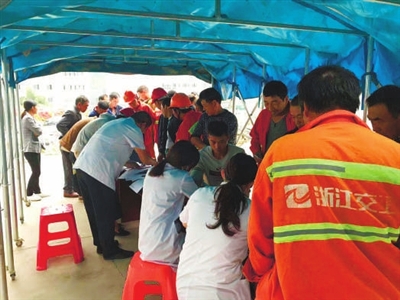 10月17日,浙江交工集团股份有限公司富阳彩虹路项目,特邀受降骨伤科医院多名医生为员工体检。在民工宿舍旁临时搭建的工棚内,医生为70多名一线作业人员开展了体检。经统计,彩虹路项目施工现场工人的体检率已达96%,公司为工友构筑了一道坚实的健康保护屏障。