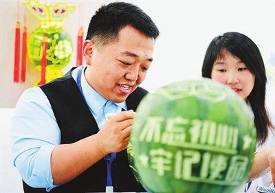 刀走碧翠、瓜映清辉。昨日上午,在嘉兴举行的第六届全国残疾人职业技能大赛暨第三届全国残疾人展能节上,平湖残疾人王春杰展示了省非物质文化遗产——平湖西瓜灯雕刻的独到技艺。