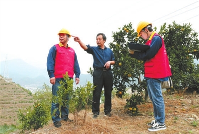 金德家庭农场场主陈金德是底本柑橘合作社社长,每天迎着朝阳爬上橘山,查看橘子成熟情况,安排采摘事宜。“老陈,我们来看看农场的用电情况,再看看喷灌线路走向”,日前,国网开化县供电公司芹阳供电所员工来到金德农场,查看橘园灭虫灯用电情况,巡检底本6191线青山头支线,勘察喷灌用电布置。
