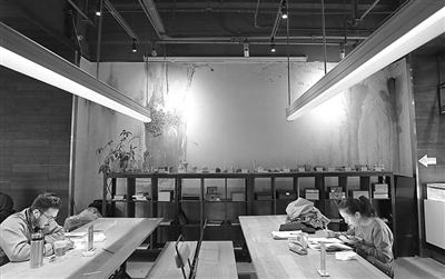 相较于传统书店,悦览树的很多细节都可谓非常贴心。如轻柔的音乐、品种丰富的食物,除了咖啡和新鲜果汁外,还有适合阅读的素食沙拉、拉法卷、帕尼尼等简餐,不过于油腻,不影响读书,也不会影响旁边读书的人;敞开的WiFi网络为读者提供了上网冲浪的免费体验,每一张桌子下面都暗藏USB充电插座,读者不必担心手机和iPad断电,完整地打造出了一个安静阅读空间。