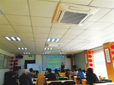 | 志愿者在为社区老人开展旅游英语培训。 |