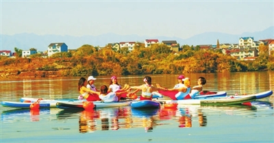信安湖非常适合水上运动。今年6月,该村引进专业公司,在湖畔的青龙码头设立桨板运动基地,推进文旅项目开发,为美丽乡村建设注入新活力。