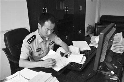 | 董国栋在查阅票据。 |