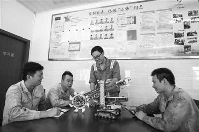 “机修讲堂”是北仑矿石码头分公司为提升青工技术水平和综合技能而搭建的学习平台。“机修讲堂”开讲5年来,通过交流培训、技术比武和典型引路等形式,组织培训教学活动近百场,惠及青工千余人。图为“机修讲堂”讲学现场。