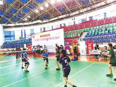 一项古老的民间体育活动正在兴起。11月23日至24日,舟山市首届毽球(踢毽子)锦标赛暨长三角地区毽球比赛在定海举行,有25支队伍近300名运动员参赛。经过激烈角逐,决出男女进攻三人(双人)、混合进攻双人、男子平踢三人等12项赛事名次。图为决赛现场。