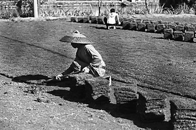 3年前,湖南省东安县大庙口镇的周寿柏、周东父子在温岭市务工时,注意到温岭这几年美丽乡村建设和城市绿化需要大量草坪,就承包了30余亩地种植草坪。父子俩早出晚归,精心细作,既获得种植草坪比普通打工高一倍的较好收益,又为当地城市绿化和美丽乡村建设作出贡献。