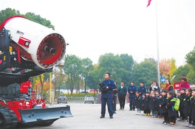 “哇!消防机器人好酷哦!”11月27日,中国、古巴、也门、西班牙、黎巴嫩等国的百余名中外幼儿携手走进义乌市消防救援支队参观消防站。在队员们的带领下,零距离体验排烟机器人、消防摩托、战斗服、水带等各类消防装备器材,学习安全知识,乐享消防科技盛宴。