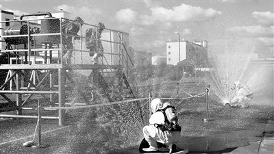 图为近期中化兴中岙山基地专职消防队员进行液态化工品泄漏抢险应急演练。通讯员应红枫 摄