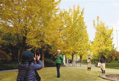 近日,阳光明媚,处于杭州闹市区的武林小广场,一大片银杏林迎来了最美的时刻,惹得众多粉丝慕名前来拍照打卡。满眼金灿灿,漫步其中,谁都会陶醉于这样的绚丽灿烂。通讯员连国庆 摄