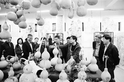 近日,诸暨市政协主席郭浩良、副市长钱勇军、政协副主席王培光、教体局局长杨纪誉一行来到诸暨技师学院,走访调研诸暨市非物质文化遗产项目教学传承工作,诸暨市古越葫芦火烙画第五代传承人、火烙葫芦技能大师工作室领办人“葫芦爹”——蒋鸣东老师上演了一段“freestyle(即兴表演)”。