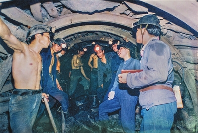 | 1999年6月,本报记者在长广千米矿井深处采访。夏之明 摄 |