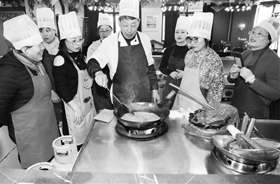 近日,20多名新温岭人在学习花生糖、芝麻糖等年货和蒸糯米蛋糕等温岭特色风味小吃及纸杯蛋糕、蛋挞等西式面点制作技艺。