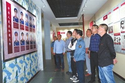 图为全体党员在党支部书记带领下,来到该县辉埠镇国防教育基地参观学习。