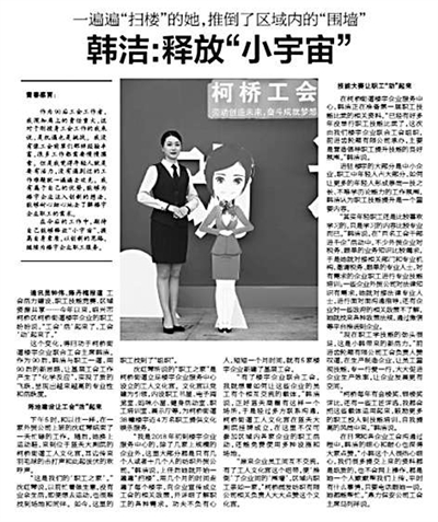 韩洁,绍兴柯桥街道楼宇企业联合工会主席。当选工会主席后,她开始一遍遍“扫楼”,用几个月的时间走遍了每个楼宇。