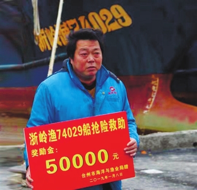 浙岭渔74029号船弃网救下31名渔民兄弟,船长金德军见义勇为的壮举令人敬佩。台州市港航口岸与渔业管理局闻讯后,号召全市渔民向浙岭渔74029号船老大学习,并奖励金德军5万元人民币。2019年1月8日,在金德军回到渔港后,该局第一时间来到码头看望慰问这位海上英雄。