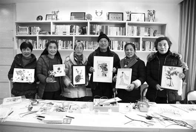 通讯员连国庆摄影报道 日前,在杭州人民社区活动室里,五六位老人正安静地做着手中的细活。桌上放着一卷卷五颜六色的彩带纸,各种大大小小的彩纸通过简单的盘、绕、卷、折,做成了一件件精美的工艺品,这些老人正在制作的就是盘纸作品。