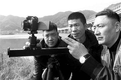 台州市路桥区金清镇勤劳村村民林官明是一名摄影爱好者。林官明在平时玩摄影时,发现手持摄影器材会出现画面抖动不稳定等现象,对此,他萌发了研发滑轨、多功能云台、通用摇臂、稳步器等摄影辅助器材的想法。对于只有初中文化程度的林官明来说,研发科技产品谈何容易。在遇到难题时,他查阅了大量科技书籍,并借助互联网进行自学,攻克一道道技术上的难题,最终自主研发出10多种摄影辅助器材。从2010年开始研究至今,林官明相继获得8项摄影辅助器材国家专利。图为林官明(中)和团队成员测试滑轨精密度。通讯员蒋友青 摄