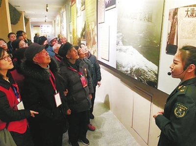 | 图为老兵们在志愿者的陪同下参观解放一江山岛纪念馆。 |