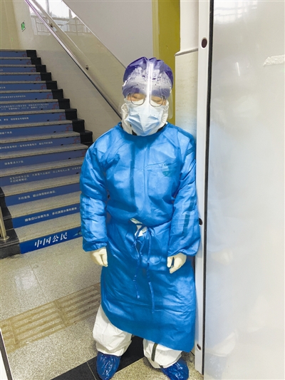 为了尽量不让其他部位直接接触病人,防止感染,医护人员每天上班前都要穿着厚重的三级防护隔离服“全副武装”,开展采样、输液、换体液等工作,每天至少在隔离病房待6个小时,每天都是超负荷工作。所以,张琪还没有来得及脱下工作服,就睡着了。