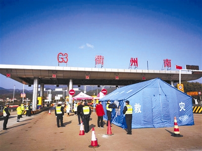 新冠肺炎防治战役打响后,为守好衢州“大门”,柯城公路管理局联合交警、卫健等部门,24小时不间断坚守,对高速车辆进行信息登记及体温测量,外防输入、内防扩散,确保发热病人不遗漏、疑似病人不遗漏、人员去向可追踪,为全市疫情防控筑起坚实的一线屏障。徐小娟 张小娟