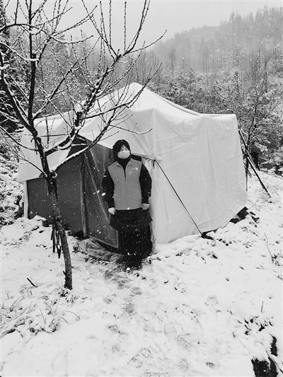 前几日,九亩村下了一天一夜的大雪,漫山遍野银装素裹,桃花岭古道白雪皑皑。风景虽美,但却给卡口的志愿者们增加了工作负担。“厚厚一层积雪,往返执勤的途中我们要爬上爬下,原本单程只有15分钟的路程,现在少说要25分钟。”王小敏说。