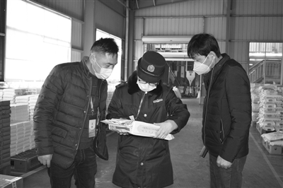 通讯员孙建新、周建莉摄影报道 为统筹把握疫情防控与民生保障、复工复产的关系,连日来,湖州市南浔区市场监管局练市分局联合当地防疫领导小组,开展复工食品生产企业执法检查,督促企业在切实落实各项疫情防控措施的同时,全面加强自身产品质量监控及知识产权保护力度,坚决杜绝生产销售假冒伪劣商品。图为分局执法人员正对一家食品生产企业的大米外包装的商标、标签、标识等进行检查。