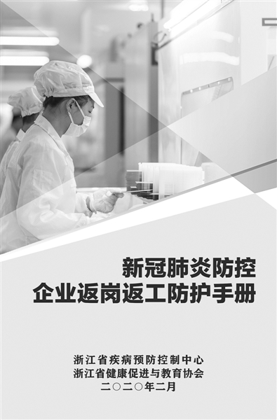日前,浙江省疾控中心推出《新冠肺炎防控企业返岗返工防护手册》,全册分为四个部分——基本知识、员工防护须知、健康技能和用人单位防控措施。其中,基本知识部分介绍了什么是新型冠状病毒、新型冠状病毒肺炎的传染源、传播途径、哪些人群为易感人群、感染症状等。在员工防护须知部分,根据返程途中、上下班途中、工作期间、下班后等不同情景分别作出提醒,同时针对怀孕和哺乳期女职工如何做好个人防护,以及职工如何进行心理调适给出详细建议。在健康技能部分,介绍了如何正确佩戴口罩、正确洗手、咳嗽和喷嚏礼仪、如何测量体温以及如何科学就医等问题。最后,在用人单位防控措施部分,介绍了树立风险意识、加强组织管理和宣传教育、摸底排查、体温监测、临时隔离点设置等方面内容。
