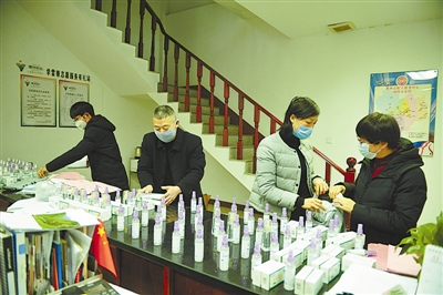 本报讯 毛朝阳、姚磊、毛彩霞摄影报道 2月18日晚上,衢州市总工会职工服务中心大厅里灯火通明。市总工会党组书记、常务副主席徐雄强,副主席宁晓明正在组织机关干部加班打包“暖心礼包”。这批“暖心礼包”将以最快速度递送到该市奋战在抗疫一线的医务人员及其家属手中。