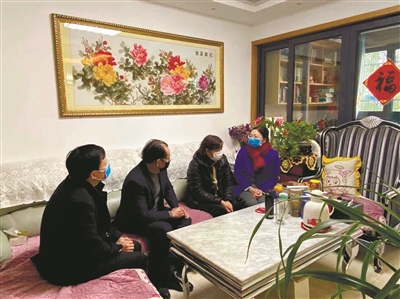 | 杭州市江干区总工会党组书记、常务副主席陈春晓代表市、区总工会看望慰问在疫情防控一线因突发心梗去世的韦长春家属(右二)。 |