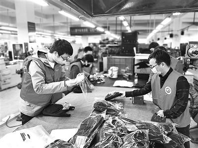 为缓解复工企业存在的暂时性用工困难,日前,桐庐县400多名机关党员来到县重点工业企业、重点服务业企业等10家规上企业,开展“送精神、送政策、送保障、送服务”的暖企助复工活动,并纷纷在车间当起了“临时工”。图为县经信局党员在力高旅游用品有限公司帮忙包装产品。