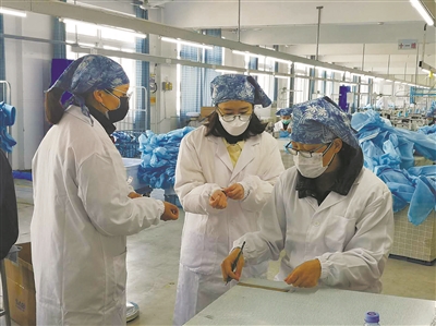 了解情况后,鄞州区总工会迅速行动起来,在做好防疫工作的基础上,由区总工会党组书记、副主席姚燕君带班,上周每天安排4名机关干部到生产车间一线做防疫服包装等辅助性工作。