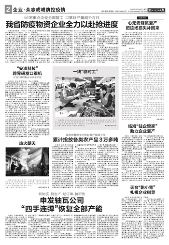 申发轴瓦公司 “四手连弹”恢复全部产能