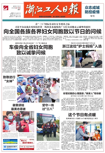 在防控疫情的特殊时期,今年“三八”节,省妇联与11个设区市妇联联合,特别采用线上形式向浙江巾帼英雄致敬。疫情发生以来,我省妇女群众积极投身疫情防控,浙江出征援鄂、援汉的医务人员中,女性就占到了六成以上。“致敬浙江巾帼英雄”视频接力活动中,现场连线了我省驰援湖北一线的女性医务工作者及11个设区市参与疫情防控的巾帼志愿者,听她们讲述了战斗在抗疫一线的生动故事和感人事迹。直播中还组织了“我为巾帼英雄献爱心”送温暖服务接力和“特别的爱给特别的你”——关爱新冠肺炎防治一线女性医务人员等活动,号召大家为驰援湖北及我省留守的医护人员、复工复产的家庭线上送“暖心包”“暖心菜”“暖心话”等。