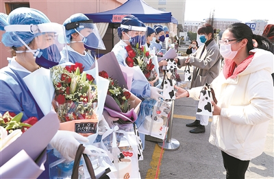 当天,新河镇总工会、妇联工作人员带着鲜花、蛋糕、护手霜,看望29位来自医护、企业防疫一线的女职工,把特别的爱给特别的“她”,致敬最美的女性“逆行者”,以汇聚社会各方力量,早日打赢这场疫情防控的人民战争。