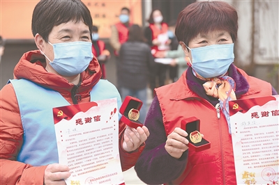 3月7日,建德市新安江街道沧滩社区妇联在“三八”妇女节即将到来之际,特地为辖区200多位抗疫一线的最美志愿者颁发“抗击疫情志愿者”纪念徽章,感谢他们在疫情发生以来,舍小家为大家 ,夜以继日坚定逆行,确保万家灯火的一片安宁而付出的不懈努力。